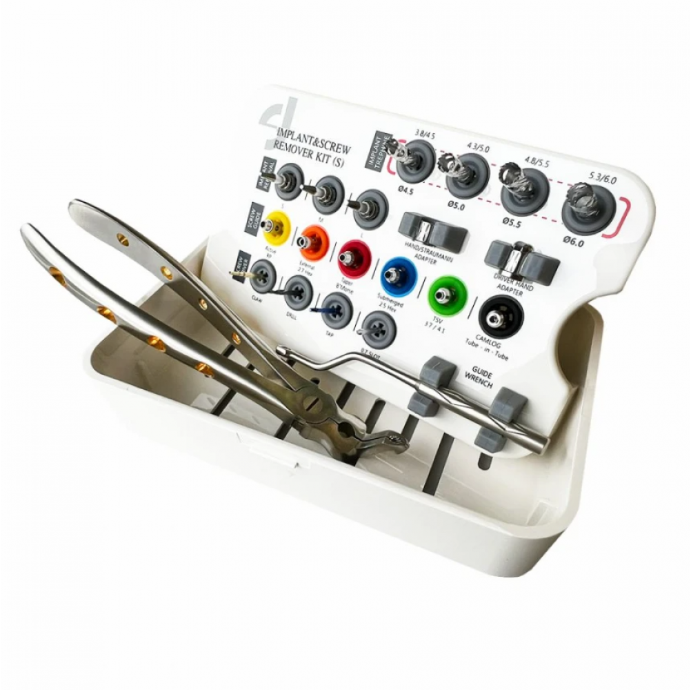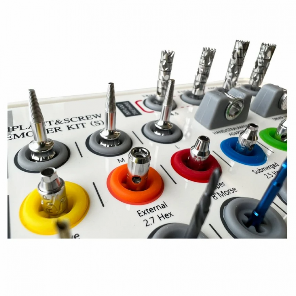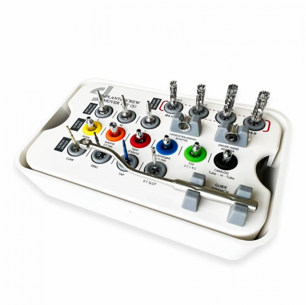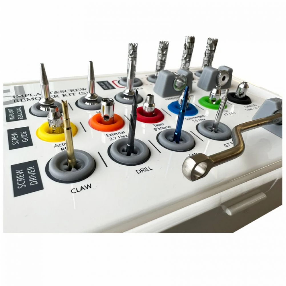Набір для видалення імплантатів та гвинтів Implant & Screw Remover Kit від Dental Studio. Чудове поєднання понять ціна-якість-комплектація серед наборів даного сегменту. В наборі зібрано найбільш популярні і потрібні інструменти для маніпуляцій по видаленню імплантатів та зламаних гвинтів.
