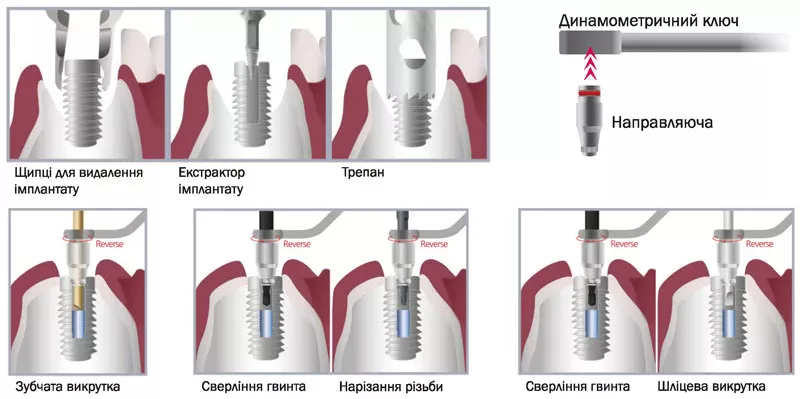 - легке видалення зламаних гвинтів абатмента або самих імплантатів;