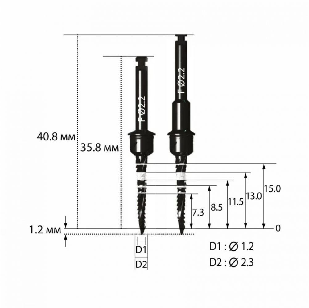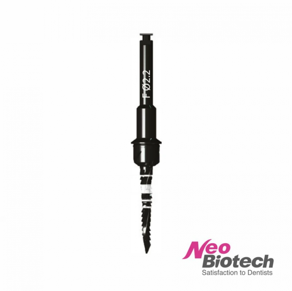 На свердло нанесені спеціальні мітки за допомогою яких можна контролювати глибину свердління. Кожна мітка відповідає певній довжині імплантатів Neobiotech. Також, для контролю глибини свердління можна використовувати обмежувачі довжини свердла, які йдуть в комплекті хірургічного набору для встановлення імплантатів Neo Master Kit від Neobiotech.