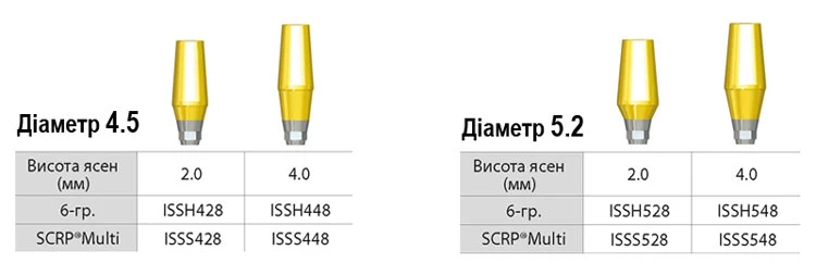 Гвинт абатмента постачається в комплекті. Рекомендований торк 30 Нсм.